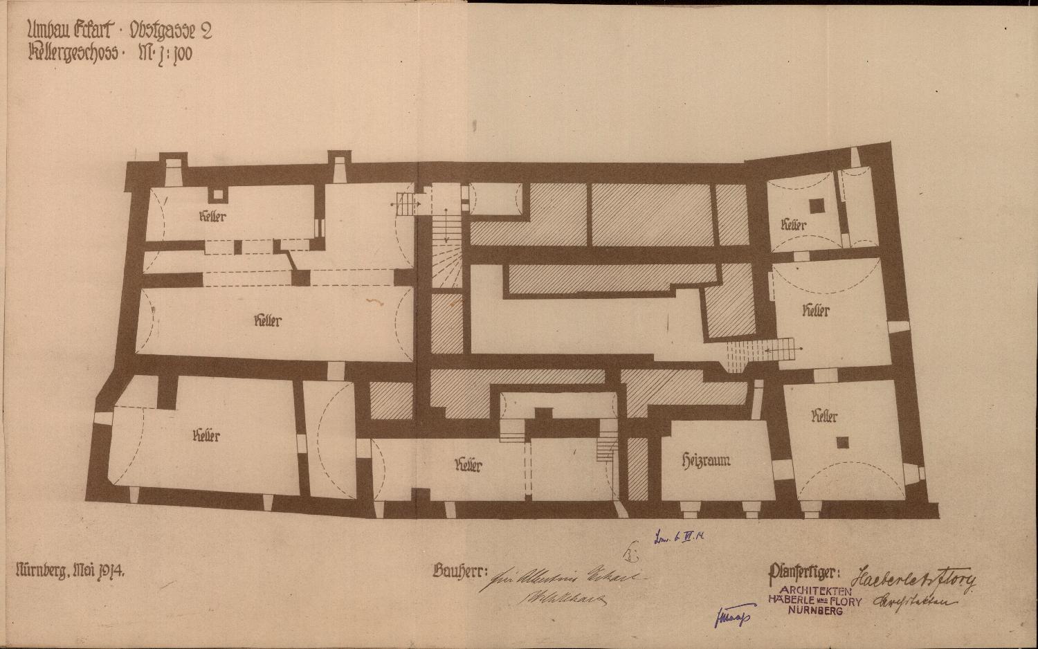 Vermerk: Für den Umbau des Hauses Obstgasse 2 werden Einzelzeichnungen eingereicht (1483/13).